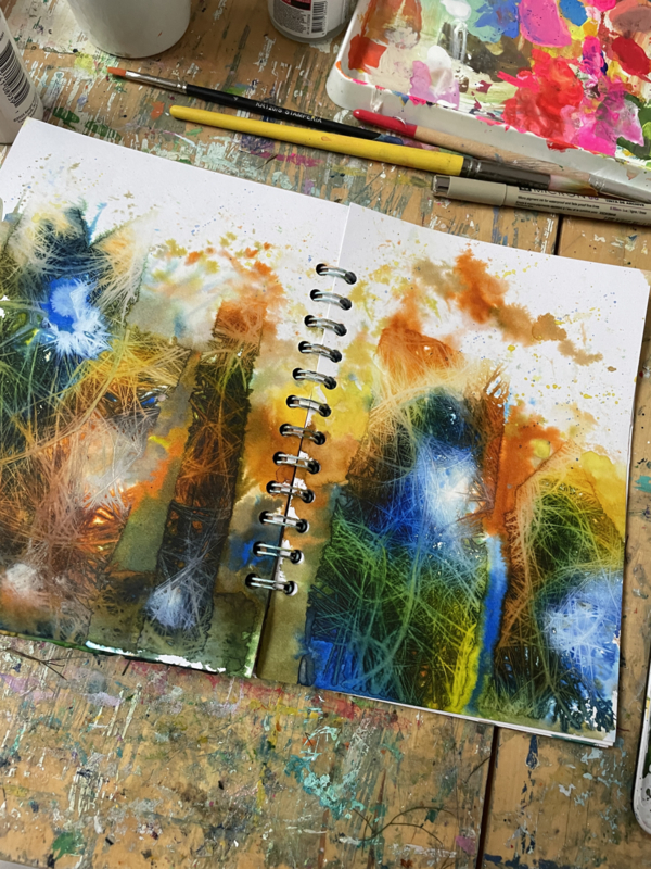 De laatste tijd heb ik veel geëxperimenteerd met inkt en manieren om die op een verrassende manier te gebruiken. Zo ontstaan bijzondere, levendige ondergronden waarop ik verder werk met collage en andere mixed-media technieken. In andere workshops heb ik deze manier van werken al eens laten zien, en daar werd zo enthousiast op gereageerd dat het tijd is om er een hele workshop aan te wijden.